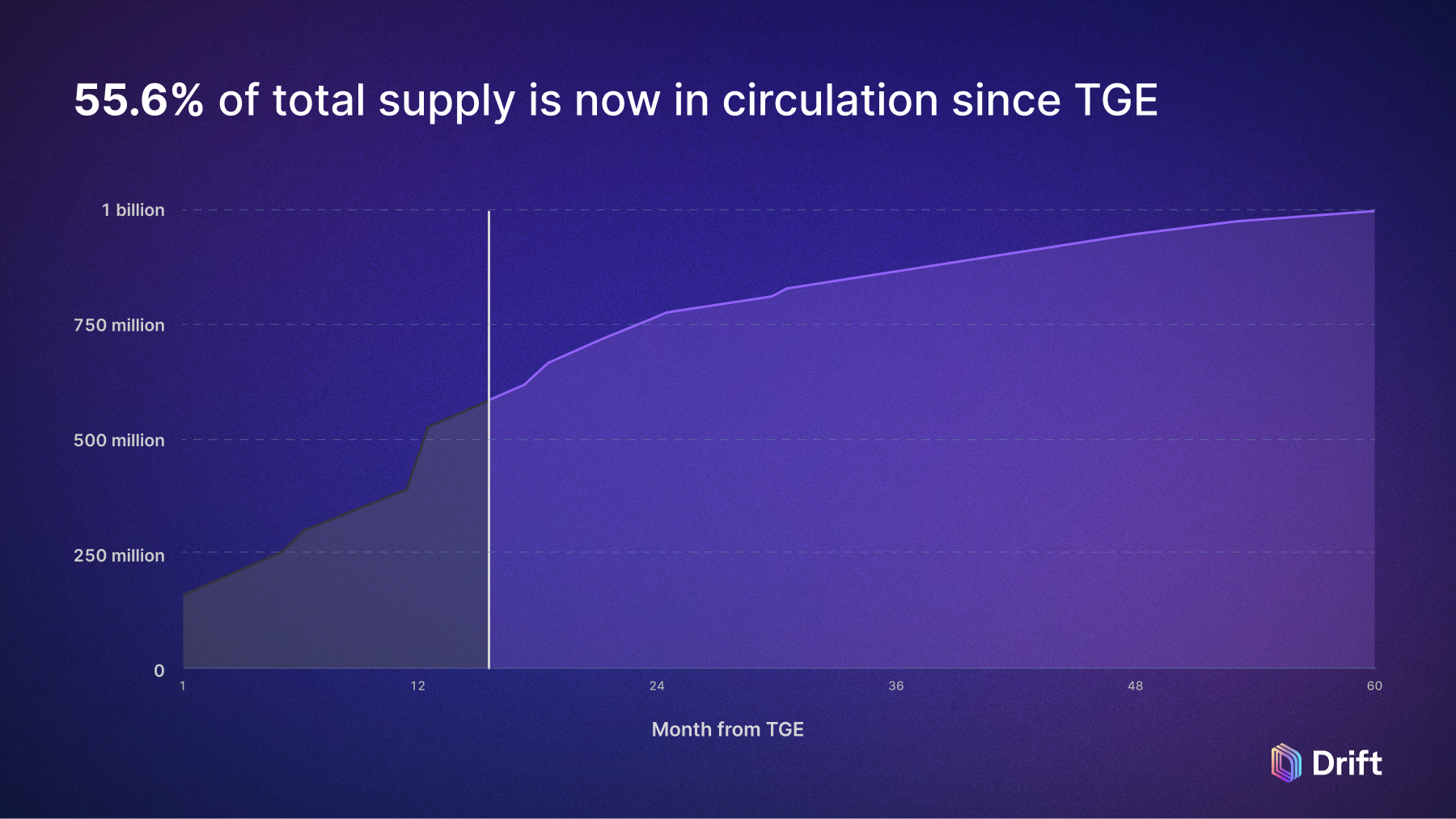 Since the DRIFT Token Generation Event (TGE) in May 2024, 55.6% of total supply is now in circulation with all major investor cliffs passed.